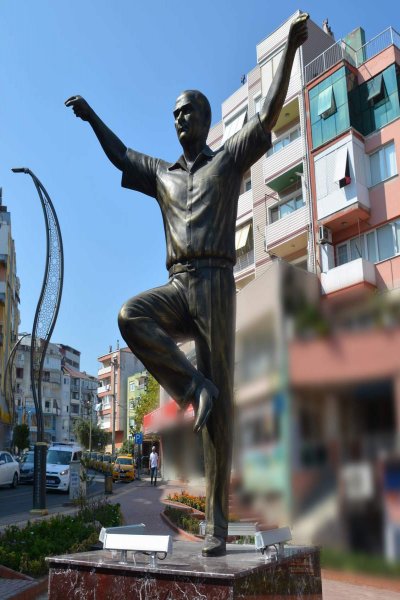 Aliağalıların takdirini toplayan harmandalı oynayan Atatürk heykeli; Aliağa’da 90’lı yılların başında Cumhuriyet Meydanı’na dikilen Atatürk heykelinin ardından Aliağa Belediyesi tarafından ilçe merkezine dikilen ikinci Atatürk heykeli oldu.