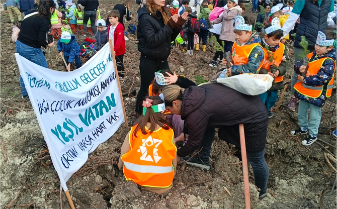 "Ormancılık haftası dolayısıyla bu sahada fidan dikimini gerçekleştireceğiz. Her sene ilçemizin değişik yerlerinde fidan dikiyoruz, bu sene de burada özellikle geçen sene yangın çıkan alanda fidan dikmeyi uygun gördük. Biraz önce orman işletme şefimizin de söylediği gibi yanan ormanlar ciğerimizi yaktı. Ülkemizde özellikle İzmir bölgesinde çok orman yangını çıktı, ilçemizde de ciddi manada yangınlar çıktı. Önemli olan bu yangınların çıkmasını engellemek, önlemek. Bu da alacağımız önlemlerle, dikkat edeceğimiz ufak tefek ayrıntılarla önlenebilir. Bu bilinci bütün evlatlarımıza vermek zorundayız. Burada ben evlatlarımızın yüzündeki ışıltıyı görüyorum. Daha iyi bir gelecek için sloganlarında belirttikleri gibi 'Biz diktik doğa büyütecek' inşallah hepsinin gözleri pırıl pırıl, dört gözle fidan dikmeyi bekliyorlar. Hep beraber daha önce yanan alanlara fidan dikip çevremizi, doğamızı güzelleştireceğiz. Ben tekrardan hepinize teşekkür ediyorum, yangınsız bir sezon diliyorum. Dikkat edersek inşallah bu yangınları azaltırız" dedi.
