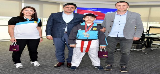 Gaziantep’te düzenlenen Minik Yıldız Türkiye Karate Şampiyonası’nda Türkiye birinciliği elde eden Aliağalı Doğan Egecan Tercan, şampiyona sonrası Aliağa Belediye Başkanı Serkan Acar’a ziyarette bulundu.