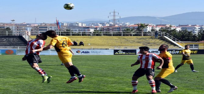 Aliağa İlçe Stadında oynanan karşılaşmayı Aykut Çetinkaya, Selman Kılınç, Halit Emre Yazıcıoğlu üçlüsü yönetti. Taraftarının coşkulu desteği ile maça hızlı başlayan Aliağaspor, kurduğu baskıyla rakibini kendi sahasına hapsetti. Yoğun baskıya rağmen gol pozisyonu üretmekte zorlanan sarı siyahlılar ilk yarının sonlarında yakaladığı net fırsatlardan ve bir penaltı vuruşundan yararlanamadı. 45. Dakikada defans oyuncusunun ceza sahası içerisinde topa elle müdahale ettiğini belirleyen orta hakem Aykut Çetinkaya, tereddütsüz penaltı noktasını gösterdi. Penaltı noktasının başına geçen Muhammed Sak’ın vuruşunu kaleci Tayfun Malatya kurtarmayı başardı. Aliağaspor öne geçme fırsatını değerlendiremeyince ilk yarı 0-0 eşitlikle sona erdi.