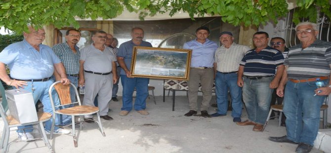 Aliağa Belediye Başkanı Serkan Acar, kent merkezi dışındaki mahallelere ziyaretlerde bulunarak muhtarlıklara mahallenin havadan çekilmiş fotoğraflarını hediye ediyor.
