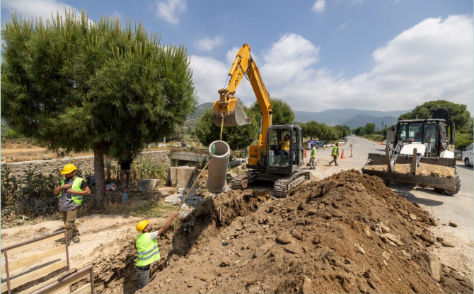 1,64 milyar TL’lik yağmur suyu ve dere yatırımlarıyla kent, yoğun yağışlara karşı daha dirençli hale getiriliyor. Bu kapsamda 83 kilometre yeni yağmur suyu hattı imalatı yapılırken 35 kilometrelik mevcut hattın bakım-onarımı gerçekleştirildi. Bayraklı Tepekule Mahallesi’nde 4 kilometrelik ayrıştırma hattı tamamlandı. Bornova’da 30 kilometre yağmur suyu, 25 kilometre atık su hattı ve 1.231 adet ızgara imalatı gerçekleştirildi. Buca 60, 61 ve 63 sokaklar ile Erdem Caddesi’nde çalışmalar tamamlandı. Güzelbahçe’de 0,8 kilometre kanalizasyon ve 3,16 kilometre yağmur suyu hattı inşa edildi. Menderes Gümüldür Fevzi Çakmak Mahallesi’nde 5,4 kilometrelik yağmur suyu hattı tamamlandı. Çeşme, Urla ve Seferihisar’da toplam 3 kilometrelik dere ıslahı gerçekleştirildi. Devam eden projeler kapsamında Alsancak Liman Bölgesi’nde yürütülen TEFWER LOT 1, LOT 2 ve LOT 3 projeleriyle toplamda 39,6 kilometre yağmur suyu, 44 kilometre kanalizasyon hattı ile terfi merkezleri ve geciktirme deposu inşa ediliyor. Alsancak Kültür ve Mimar Sinan mahallelerinde 6 kilometre yağmur suyu, 1 kilometre kanalizasyon hattı ve 5 terfi merkezi çalışması sürüyor. Bayraklı Sevgi Yolu’nda 4 kilometrelik hattın yüzde 60’ı tamamlandı. Çiğli Balatçık’ta 13 kilometre yağmur suyu ve 3 kilometre atık su hattı çalışmaları devam ediyor. Ödemiş’te 4,85 kilometrelik hattın 4,1 kilometresi tamamlandı. Kiraz’da yeni yağmur suyu çalışmaları başladı.