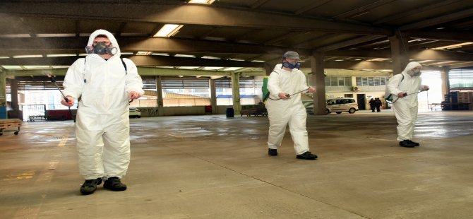 Koronavirüs salgını tehlikesinin en aza indirilmesi ve kent genelinde sağlıklı yaşam alanlarının oluşturulması amacıyla belediye merkez hizmet binası, İZBAN Aliağa durağı, okul, cami, pazar yerleri, toplu ulaşım araçları gibi insanların sıklıkla kullandığı mekanlarda dezenfekte çalışması yapıyor. Çalışmalar kapsamında Cumhuriyet Meydanı’nda bir araya getirilen çok sayıda toplu taşıma aracı ekipler tarafından tek tek özel solüsyonla dezenfekte edilerek hijyenik hale getirildi. Öte yandan kentte halkın alış veriş amaçlı kullandığı pazar yerlerinde de ekiplerce dezenfekte çalışması gerçekleştiriliyor.